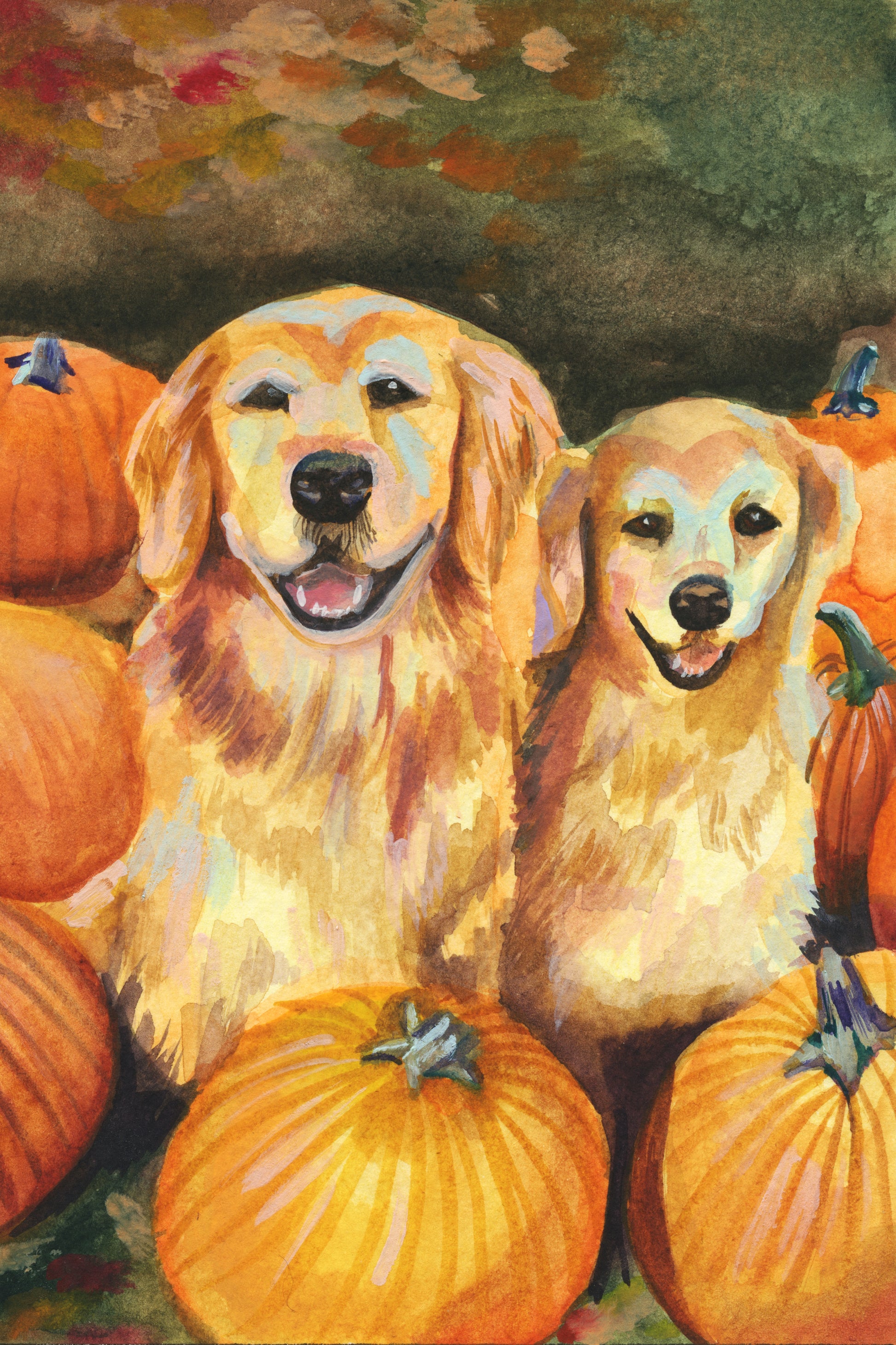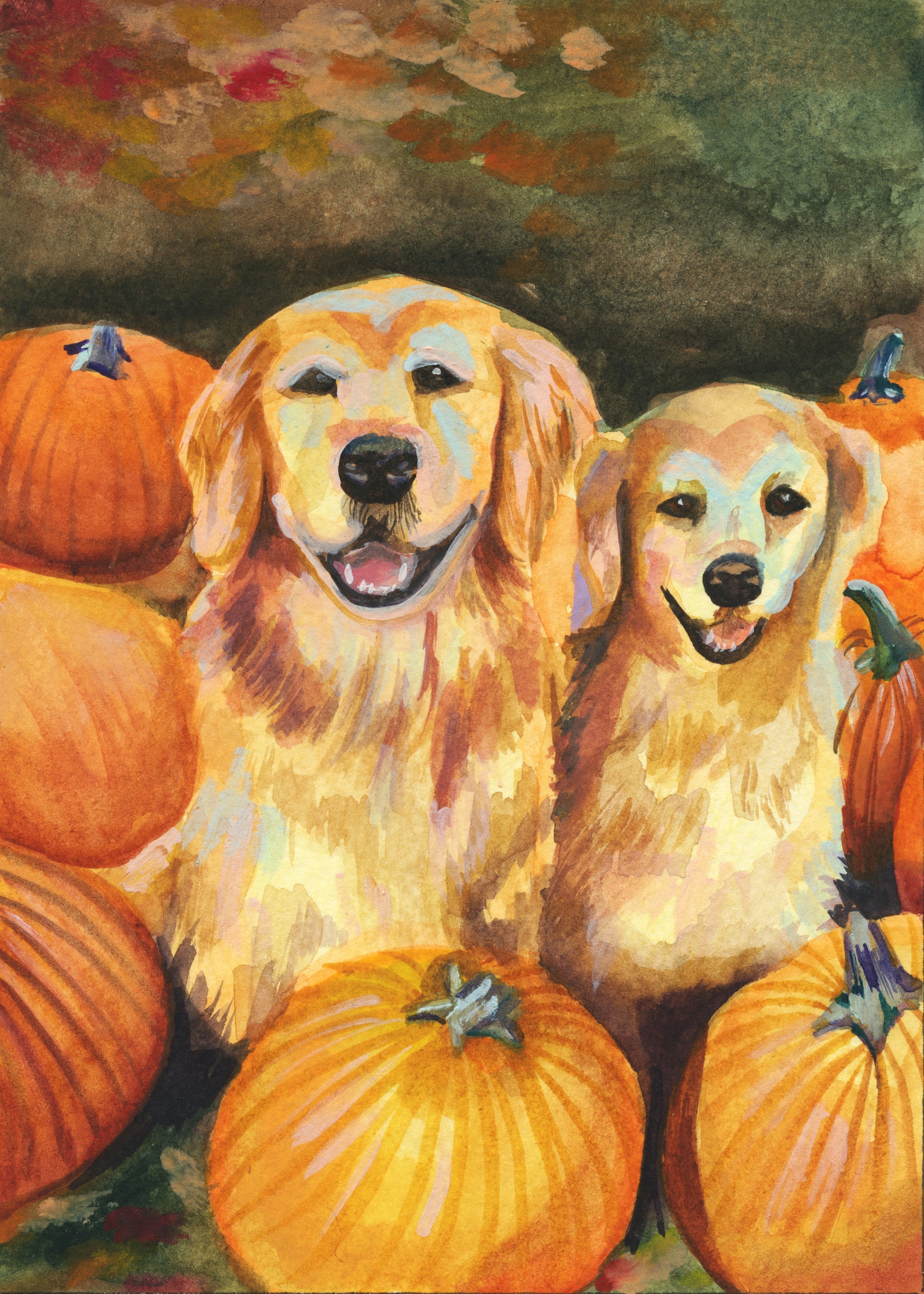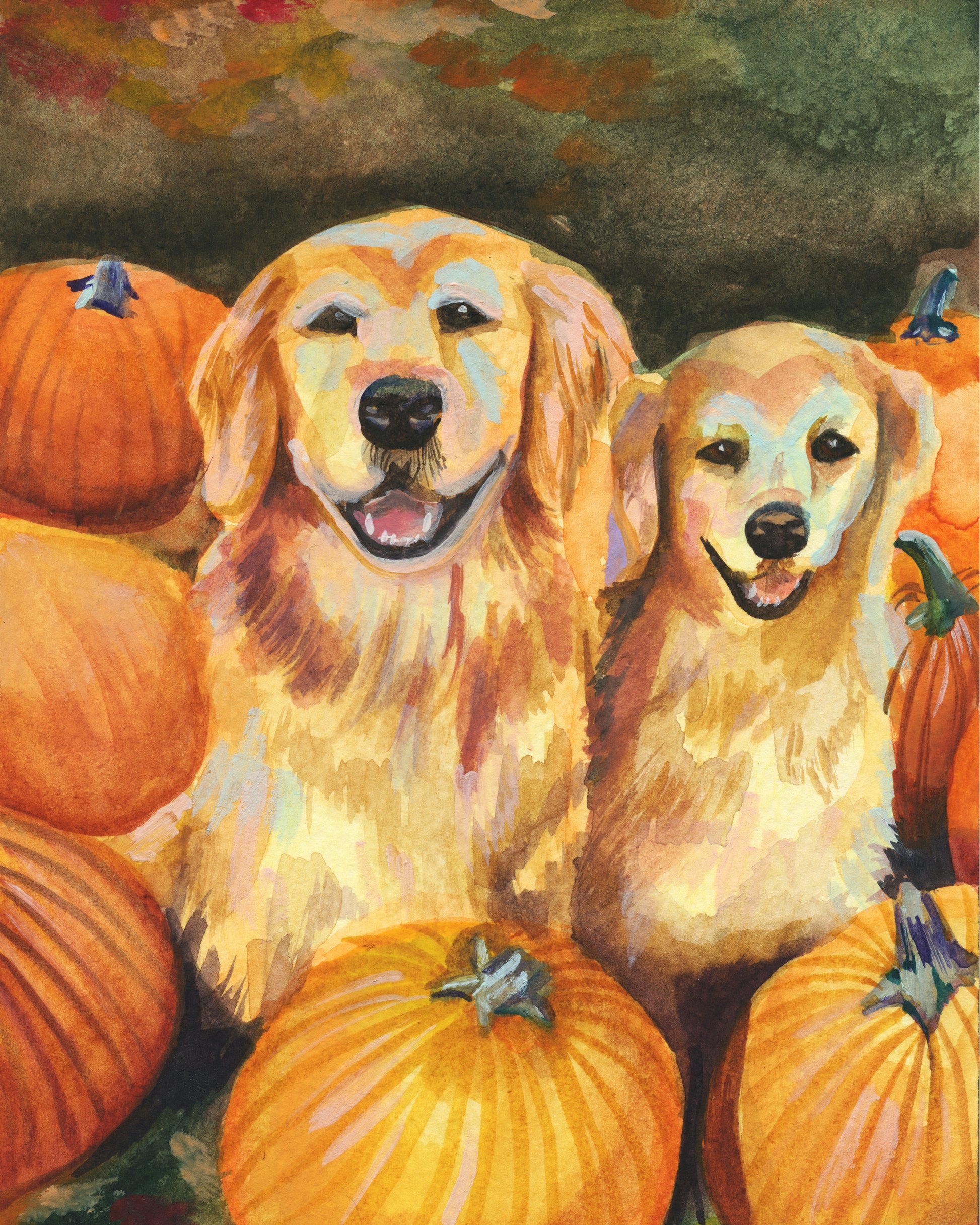 Goldenrod is Day 10 of the 30 Day Print Series, featuring two golden retrievers surrounded by pumpkins and autumn leaves. Painted in rich golden tones, this piece captures the warmth, companionship, and playful spirit that define the heart of the season.